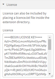 Within the “License” panel a license text/string can be entered. Apart from that option different other options for licensing exist (described at License Management). When entering a license within the properties panel the license is stored inside the worksheet. Which means adding the extension to other worksheets would require to enter a license again. Check out the other options for license management for avoid this.